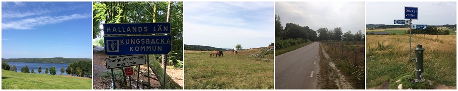 Efter drygt två mil på mitt äventyr möter Jenny upp på Fjärås bräcka med lite förfriskningar. Vatten, banan och dadlar, smakade ljuvligt och gav härlig energi. Vi sitter en stund och njuter av den vackra utsikten på bräckan med sjön Lygnern åt ena hållet och havet åt andra hållet, mäktigt och väldigt vackert. Några lycka till pussar senare springer jag vidare och lämnar bräckan bakom mig mot mitt mål att tassa runt sjön.