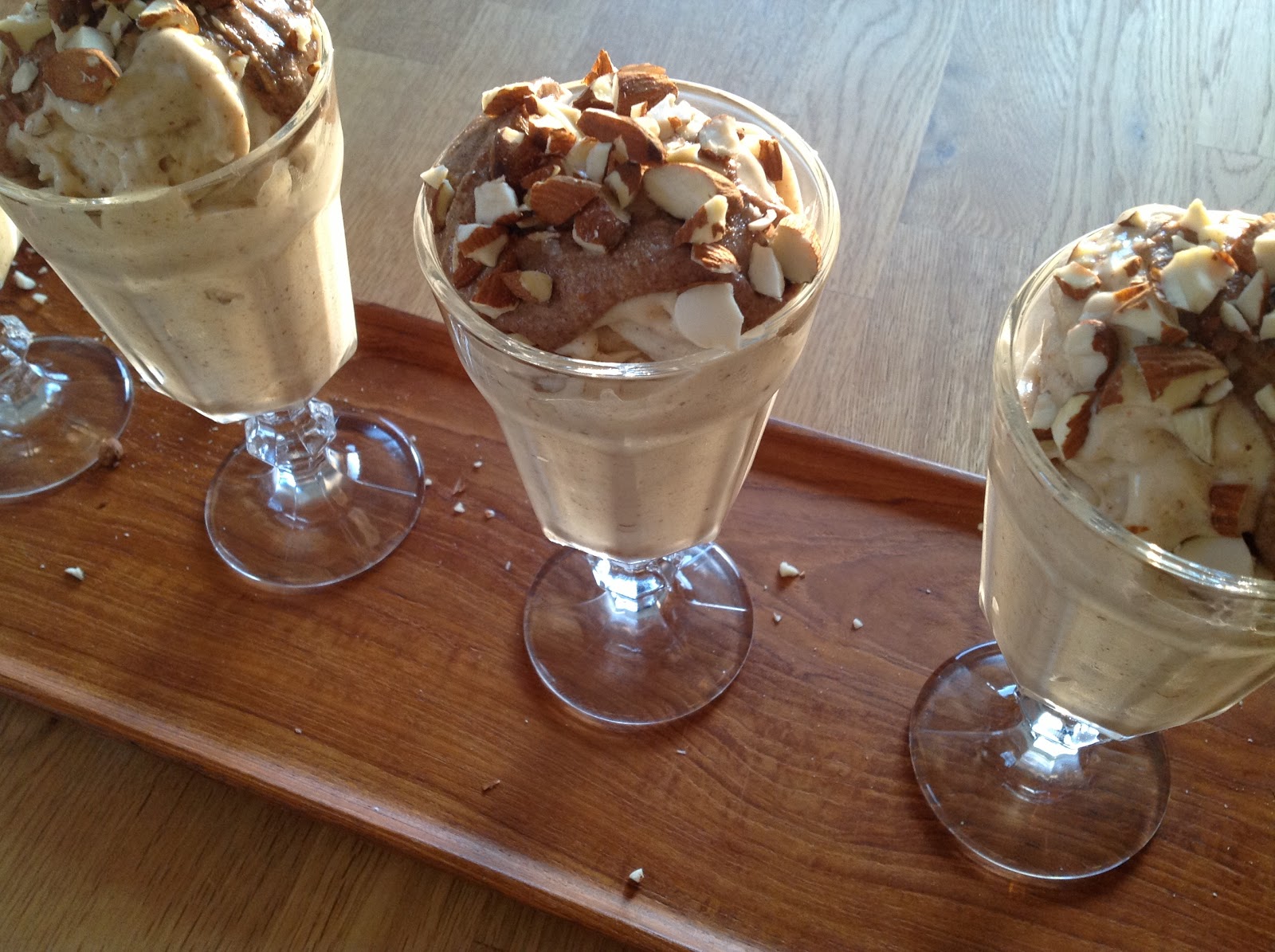 Sagt som gjort så testade vi att göra bananglass med mandelsmör och resultatet blev himmelskt! Så tveka inte utan njut av underbar bananglass med mandelsmör i sommar du också!