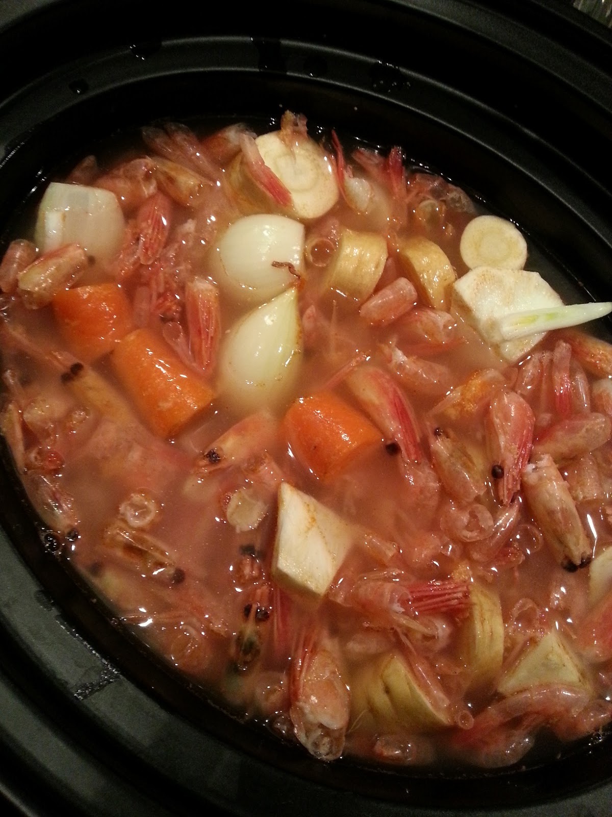 Klockan tre på natten vaknade jag!!! Vad i hela fridens namn är det som luktar?! Räkskal som blir räkfond kan jag meddela! Lyckades somna om. Allt som allt blev det tio timmars koktid.