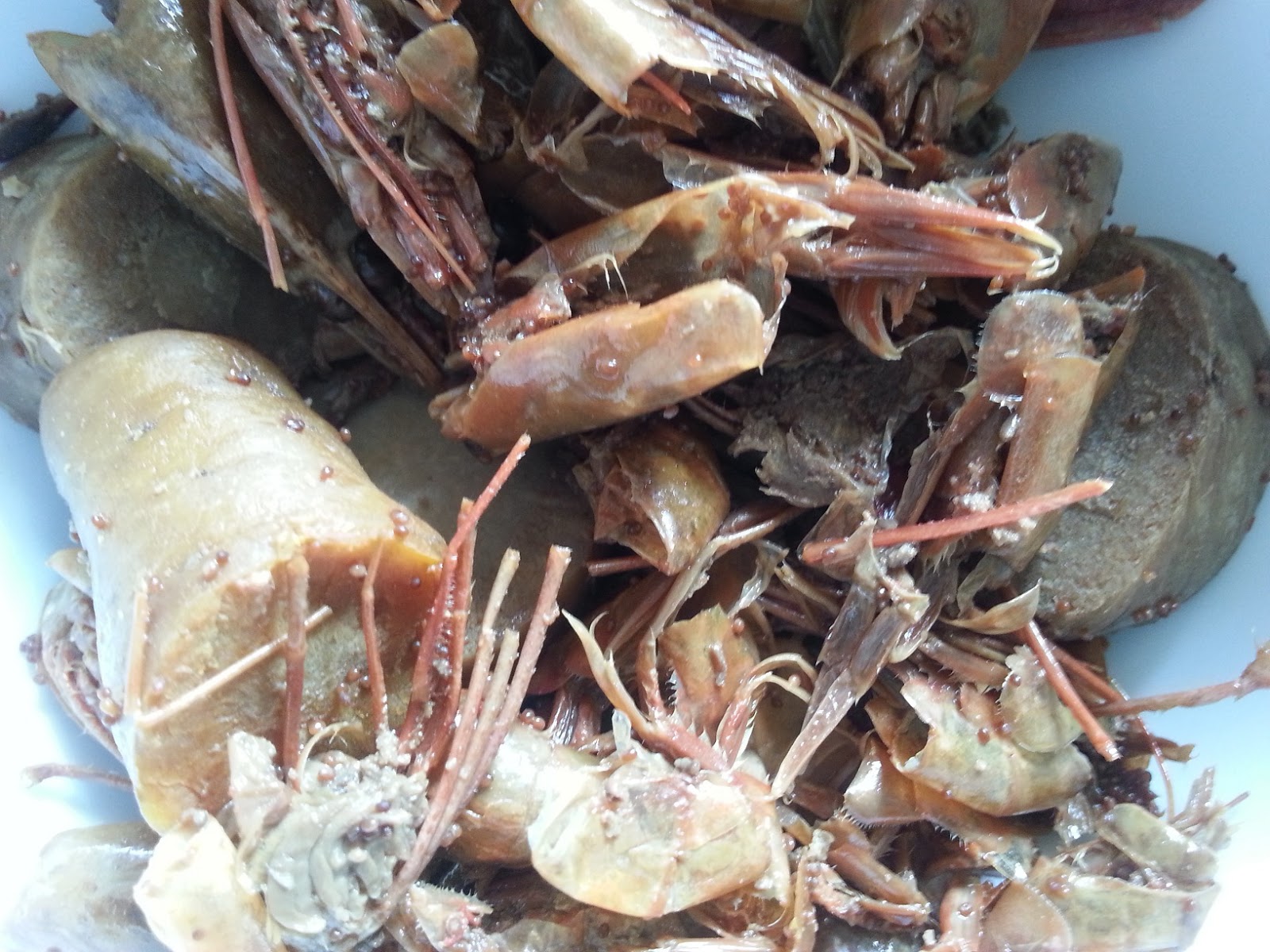 Gick glad i hågen och tränade på eftermiddagen och när jag vältränad och glad tar på mig min jacka får jag en flash-back. Jag har känt denna doft förut. Räkdoften hade fastnat även i mina kläder!!! Öppnade tvärdrag när jag kom hem… Tänkte göra på motsvarande buljong-sätt med exempelvis oxsvans, men det kanske får bli när vädret tillåter öppet fönster några timmar.