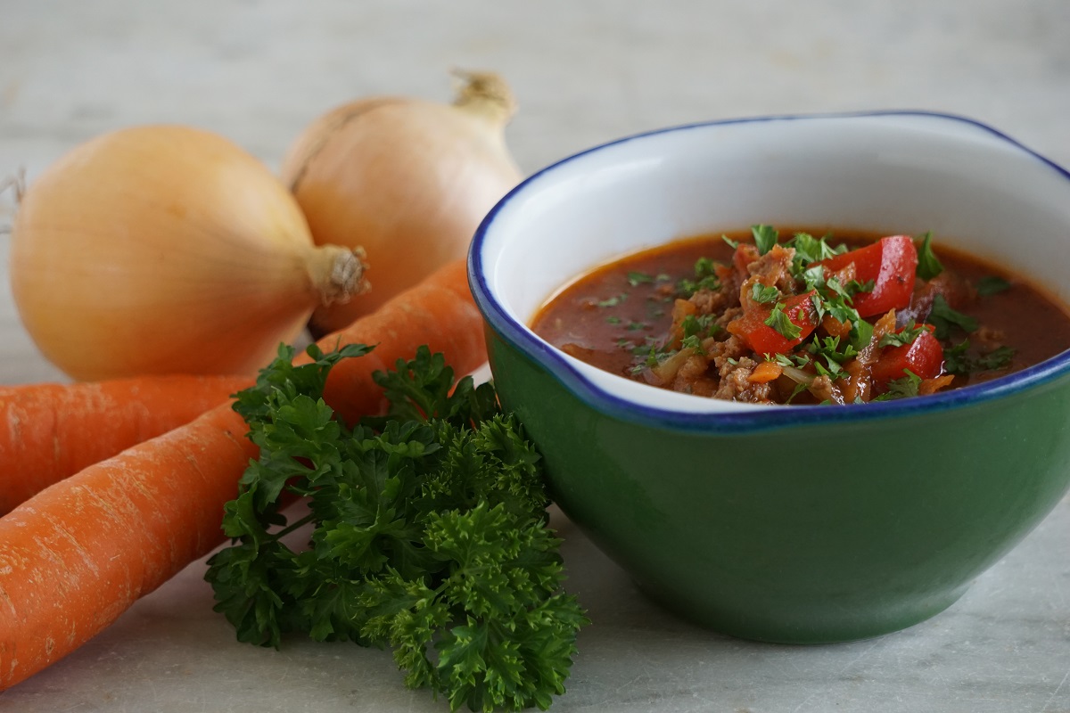 För recept och hur du går tillväga titta in i Paleoskafferiet. Länk till Gulaschsoppa med köttfärs hittar du här.