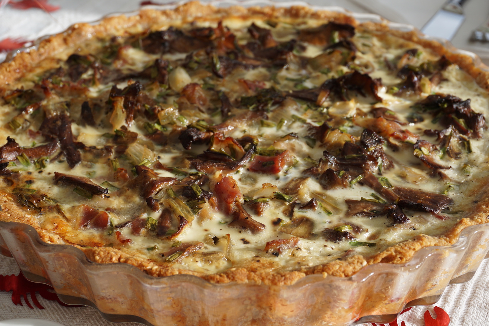 I stället för Västerbottenpaj med gyllene kantareller som vi lagat tidigare år gjorde vi denna härliga Kantarellpaj med bacon! Den blev en succé och vi kommer fortsättningsvis att äta den både tillsammans med kräftor och vid andra tillfällen när vi blir sugna på något gott.