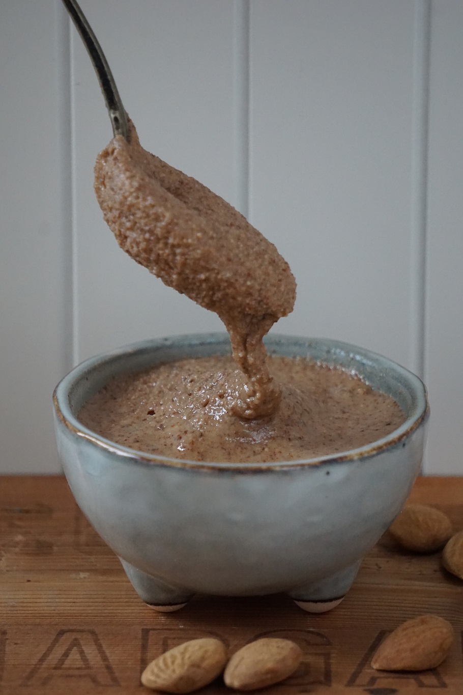 Nu till det riktigt roliga och goda! Mandelsmör går att använda i så många recept men det går självklart även att äta precis som det är. Riktigt njutbart och näringsrikt!