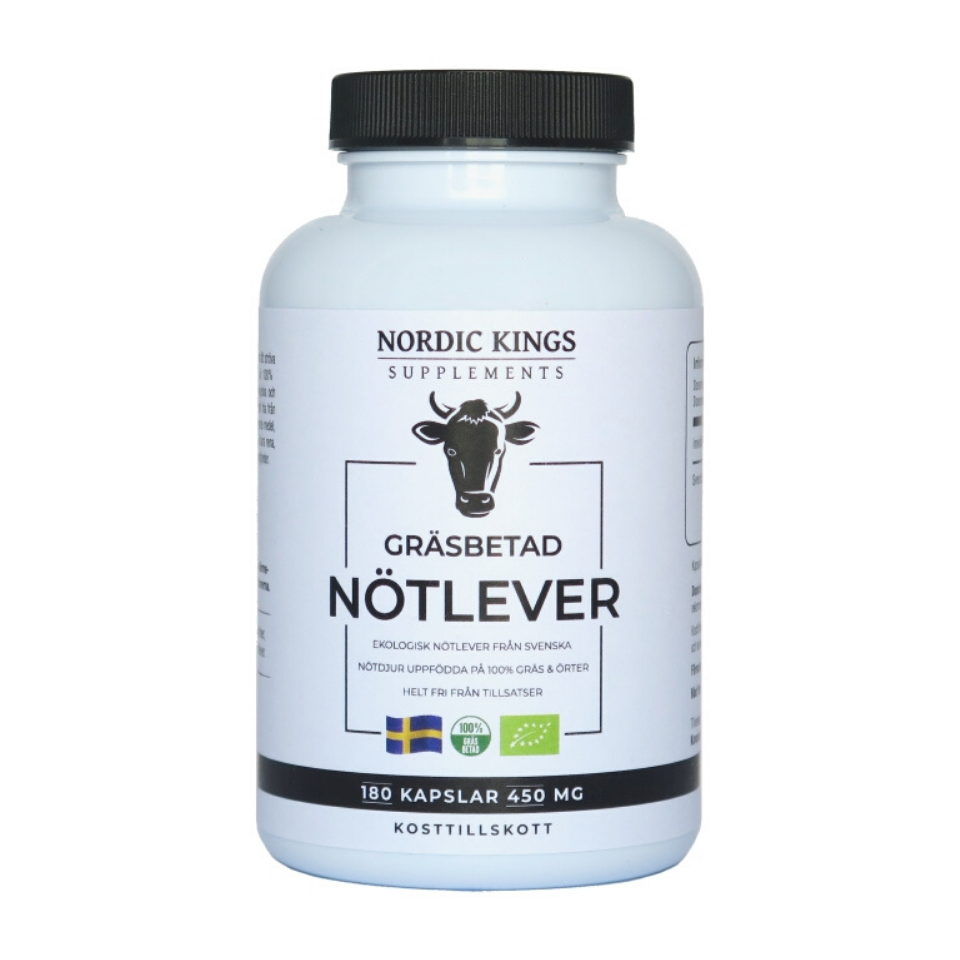 Gräsbetad nötlever från Svenska, ekologiska och KRAV certifierade nötdjur uppvuxna på 100% gräs och örter och 0% spannmålsfoder. Varsamt frystorkad för att bibehålla bästa möjliga näringsprofil. Sannolikt de finaste inälvstillskott som finns på marknaden.