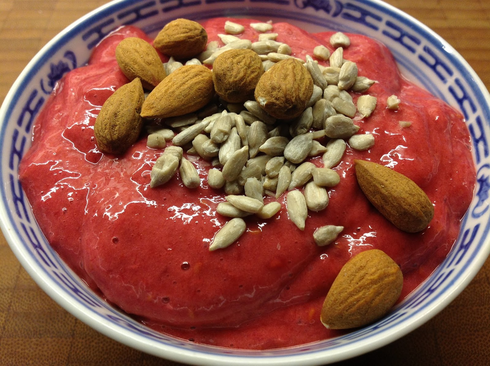 I går delade vi med oss av ett härligt recept på Raw Banan och Mangokräm som var en variant av alla de enkla och goda frukt- och bärkrämer som vi njutit av i sommar när vi önskat ha ett snabbt mellanmål eller en enkel frukost. Här kommer en variant på Hallon.