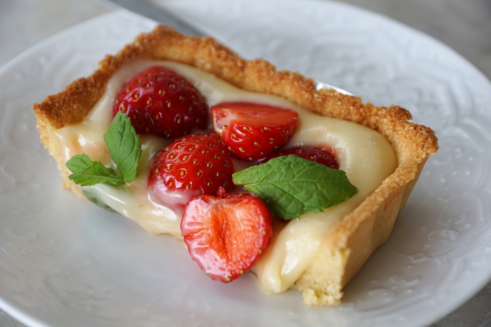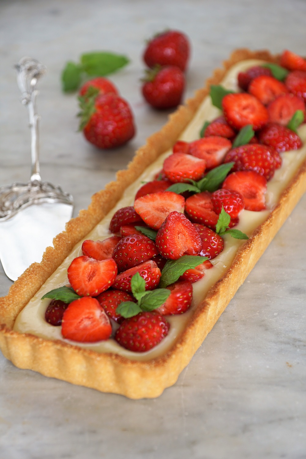 Jordgubbar tillsammans med syran från citron i vår Lemon Curd och friskheten från de spröda myntabladen i denna Sommar tarte skapar en härlig smaksymfoni av sommar.